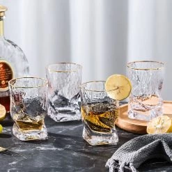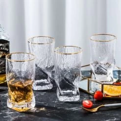 Gold Rimmed Hammer Twist Whiskey Glass (set of 4) – Size: 3.14″W x 4.44″ H