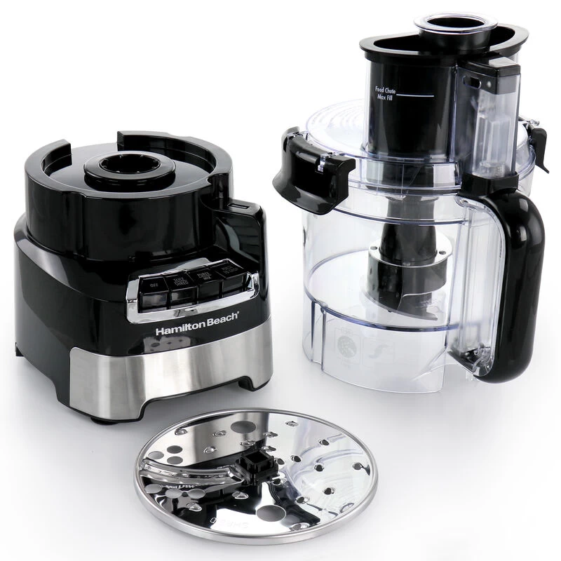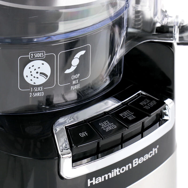 The Hamilton Beach Stack & Snap 12 Cup Food Processor takes the guesswork out of food processing with its easy stack and snap assembly and simple function guide that shows you which blade to use and which button to push. Use this versatile machine to easily prepare ingredients for all your favorite recipes. The versatile stainless steel S-blade chops, mixes and purees, and the stainless steel reversible disc shreds on one side and slices on the other. The dough blade kneads dough for making delicious homemade bread. The 450 watt motor has the power to process all types of ingredients. The Big Mouth feed tube reduces pre-cutting to save you time on prep work in the kitchen. This large food processor comes with a 12 cup sealed bowl with pour spout to eliminate leaks and prevent spills when pouring ingredients. A handy cord storage area hides the cord when not in use to reduce countertop clutter. And the blades, bowl and lid are all dishwasher safe so you don’t have to spend a lot of time cleaning up. All food zones are BPA-free. Unique design requires no difficult twisting & locking. Simple function guide shows you which blade to use & which button to press. Simple graphics show you which blade to use and which button to press. Item Dimensions: 10.00″ x 8.75″ x 15.25″ Item Weight: 6.05lbs