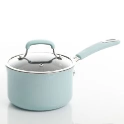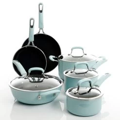 Bring out robust flavors to the kitchen with the Kenmore Elite Andover 10 Piece Nonstick Aluminum Cookware Set in Glacier Blue. The heavy gauge aluminum set provides even heat distribution for accurate cooking. Fret no more with the scratch resistant Teflon 3 layered nonstick interior, allowing for less use for oils or fats. The BPA free silicone handles stay cool to the touch during the heated cooking process. These cooking pots and pans give chefs the power to create a variety of meals such as filet mignon, vegetable soup, seared chicken, and much more! Item Dimensions: 23.20″ x 14.60″ x 7.40″ Item Weight: 18.40lbs