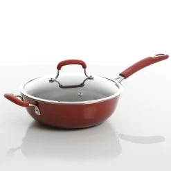 Bring out robust flavors to the kitchen with the Kenmore Elite Andover 10 Piece Nonstick Aluminum Cookware Set in Red Gradient. The heavy gauge aluminum set provides even heat distribution for accurate cooking. Fret no more with the scratch resistant Teflon 3 layered nonstick interior, allowing for less use for oils or fats. The BPA free silicone handles stay cool to the touch during the heated cooking process. These cooking pots and pans give chefs the power to create a variety of meals such as filet mignon, vegetable soup, seared chicken, and much more! Item Dimensions: 22.80″ x 14.60″ x 7.40″ Item Weight: 18.60lbs