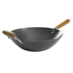 The Kenmore Hammond 14 Inch Flat Bottom Carbon Steel Wok in Black with Wooden Handles provides quality with exceptional style, durability and versatility. Carbon steel construction provides fast, even heating and outstanding performance day after day. The non-stick cooking surface provides healthier meals by requiring less oil or fat when it comes to cooking long time favorite meals. Create a stunning shrimp fried rice, prized peppered chicken, fantastic fried veggies and more! Item Dimensions: 18.40″ x 13.00″ x 5.40″ Item Weight: 3.70lbs