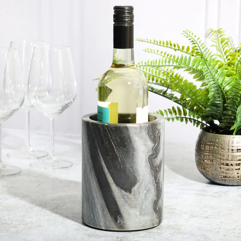 The Laurie Gates Marble Wine Cooler is a chic look for any occasion. Entertain friends and family at home in style with this stunning marble wine chiller. Of natural origin, this handcrafted piece showcases gorgeous gray and white veins with unique color variations, giving it a one-of-a-kind feel. Make a statement while keeping your favorite white chilled and protecting your table or countertops from condensation with this luxurious wine cooler. Item Dimensions: 4.70″ x 4.70″ x 6.00″ Item Weight: 3.95lbs