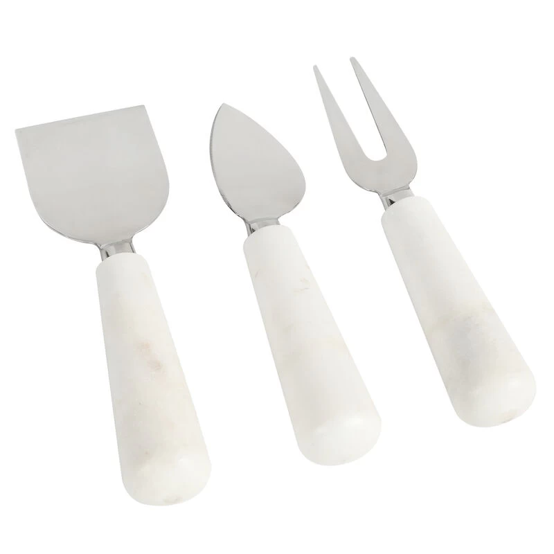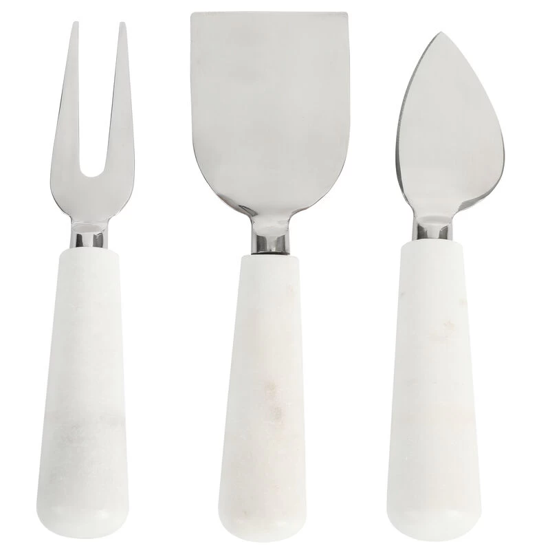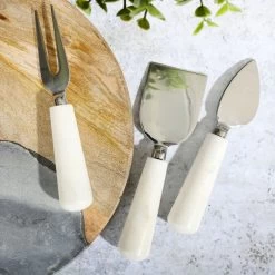 Make the Laurie Marble and Stainless Steel 3 Piece Cheese Knife Set a key element of your home entertaining staples! Slice and serve your favorite cheese in style with these gorgeous knives. Cool white marble complements sparkling stainless steel blades and brings a chic elegance to any table. The sturdy heavy weight handles provide ease of precision and unmatched quality. Elevate your entertaining with this must-have serveware. Item Dimensions: 7.00″ x 6.25″ x 1.50″ Item Weight: 1.20lbs