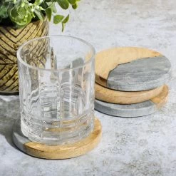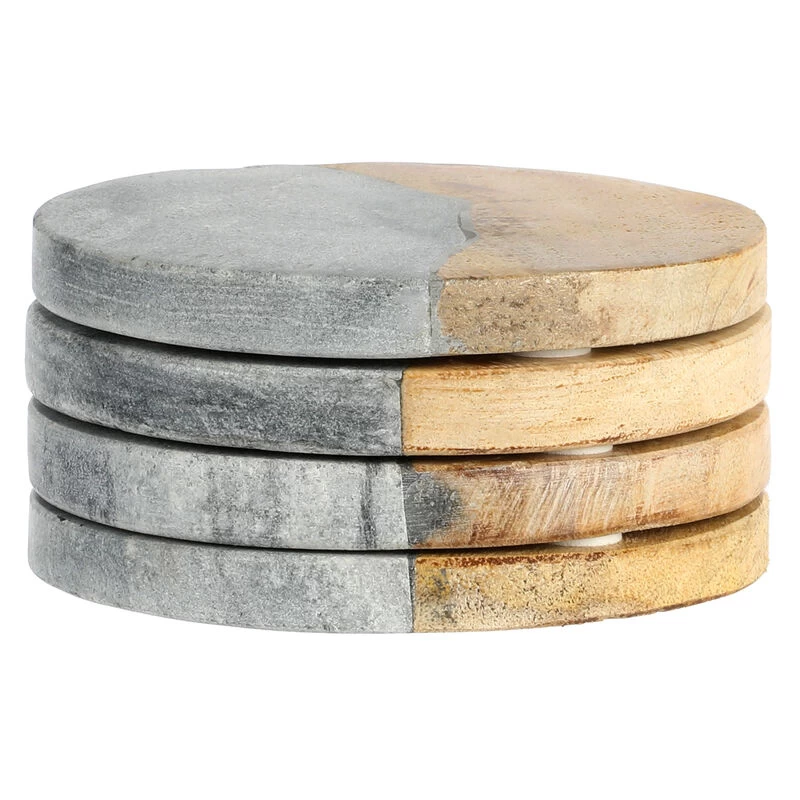 The Laurie Gates 4-Piece Mango Wood & Marble Coaster Set is perfect for entertaining friends and family at home. Handcrafted in India, warm Mango wood and dark gray marble give these round coasters a one-of-a-kind feel that adds contemporary style to cocktail hour. Elevate any table and get your guests talking with this stunning set of round coasters. Item Dimensions: 4.00″ x 4.00″ x 0.50″ Item Weight: 0.35lbs