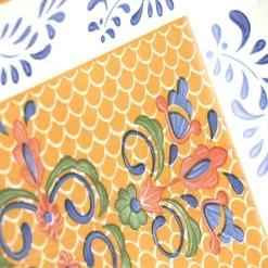 Stand out at a dinner party with this vibrant, floral decorated Laurie Gates Stoneware Platter in orange and white with blue, green, and red details. At 14.8″ long, you can hold plenty of food from appetizers to a main course. The beautiful high gloss finish makes this dish microwave and dishwasher safe allowing for easy use and even easier clean-up. Item Dimensions: 14.80″ x 8.50″ x 2.00″ Item Weight: 3.20lbs