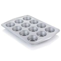 Muffin Pan: 15.75″ length, 11.25″ width, 1.25″ height, 1.4lbs weight