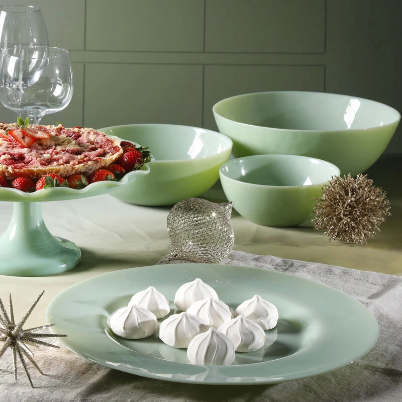 The Martha Stewart 13in Jadette Glass Serving Platter is simple and sleek and will add a pop of pastel color to your table. Use this medium sized platter for appetizers, fruits, veggies, or other serving food. The simple and sleek high gloss design makes this piece timeless. Dishwasher safe for easy and fast clean-up! Item Dimensions: 13.00″ x 13.00″ x 1.00″ Item Weight: 2.55lbs