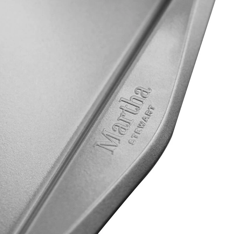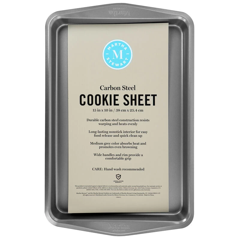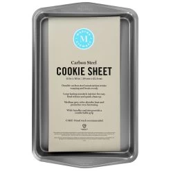 Bake all your favorite cookies with the Martha Stewart Cookie Sheet. Whether its cookies or roasted veggies, make this the perfect addition to your kitchen and treat all your friends and family. Made of pure carbon steel that heats evenly for consistent baking results. The long lasting nonstick interior coating makes food release and clean up super easy. Medium grey color absorbs heat and promotes even browning. The wide handles and rim provide a comfortable grip. Item Dimensions: 17.50″ x 11.00″ x 1.00″ Item Weight: 1.60lbs