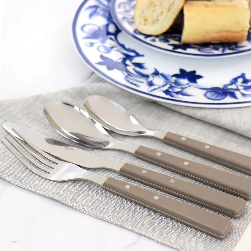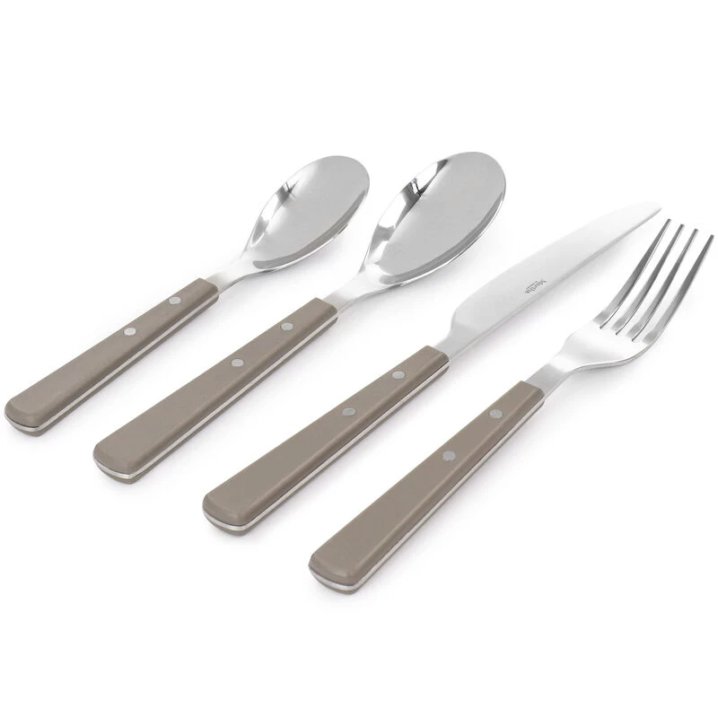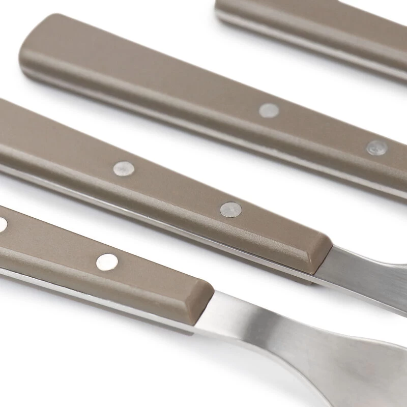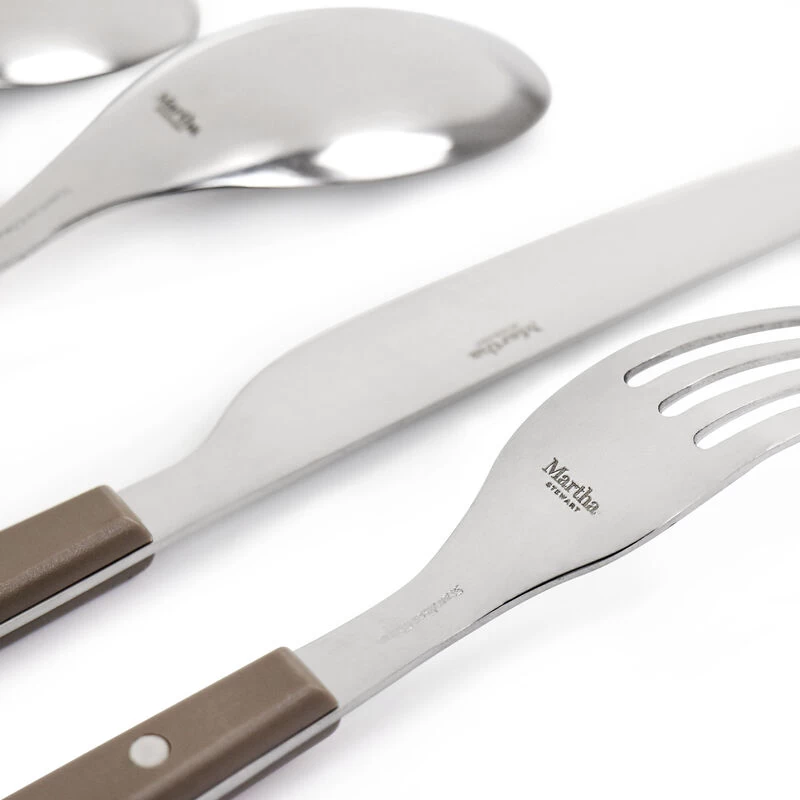 You should enjoy every piece of kitchenware in your home, right down to the basics. Each piece has an important part to play in building an environment where you feel inspired, guests feel welcome, and culinary enthusiasm abounds. The Garden Cottage Flatware Set contributes an effortlessly classic appeal to any home and kitchen, balancing riveted handles in a warm grey finish (a color personally chosen by Martha Stewart) with mirror-polished stainless steel utensils. The lasting shine of the 4 dinner forks, 4 dinner spoons, 4 dinner knives, and 4 teaspoons will hold up in the dishwasher as well, making these pieces of cutlery an easy choice when it comes to investing in the beauty and functionality of your home. Item Dimensions: 11.00″ x 7.80″ x 3.20″ Item Weight: 2.30lbs