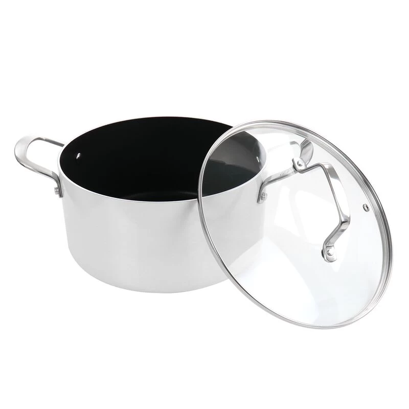 Cook for the whole family with this Martha Stewart 10 piece cooking set. Made of strong, heavy gauge construction, durable aluminum that is built to last. The triple layered nonstick interior coating makes it easy to clean up and easy food release. With a beautiful easy clean porcelain enamel exterior finish makes this a beautiful set for your kitchen. The riveted cast handles allows for easy handling and hanging storage. This set comes complete with two sauce pans, a saute pan, one dutch oven, and two frying pans. Item Dimensions: 60.00″ x 14.75″ x 9.25″ Item Weight: 19.00lbs
