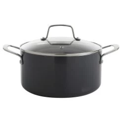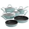 Suit up the kitchen work area with the Martha Stewart 10 Piece Aluminum Nonstick Enamel Cookware Set in Gray with Lids. The nonstick coating allows for more forgiving cooking and provides a fast cleanup. Its aluminum body evenly distributes heat and is oven safe up to 480F. For long lasting quality its recommended to hand wash the cookware. Create the perfect pasta dish, simmer beautiful bechamel sauce, or make a savory steak for dinner tonight. Item Dimensions: 0.00″ x 0.00″ x 0.00″ Item Weight: 0.00lbs
