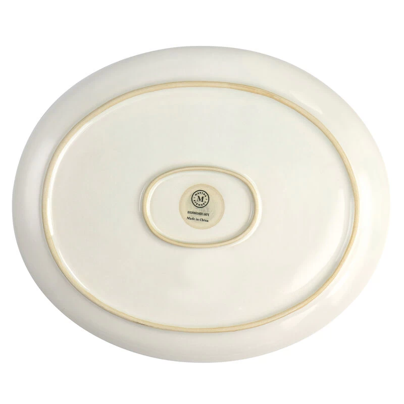 The Martha Stewart 13.6in Reactive Glaze Oval Serving Platter will add a sublet and modern touch of style to your table. With it’s standout reactive glazed colored edge, this piece will add interest to your table while drawing your eye to what you are serving. This beautiful and simple piece will soon become your go to for parties and events. Constructed with stoneware material makes this platter completely dishwasher free for easy and hassle free clean up. Item Dimensions: 14.00″ x 11.50″ x 1.00″ Item Weight: 2.95lbs