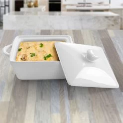 Entertain all your guests and family with this beautiful Martha Stewart Stoneware Casserole with Lid in White. Serve up all your favorite sauces or sides and add a touch of elegance to your event whether formal or casual. This Martha Stewart utensil is just one of the amazing pieces you can get for your home kitchen. Complete the entire collection to truly feel right at home. Item Dimensions: 6.75″ x 5.25″ x 3.25″ Item Weight: 1.60lbs