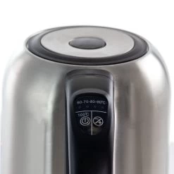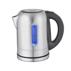 Make all your favorite hot beverages and more with the Mega Chef 1.7Lt. Stainless Steel Electric Tea Kettle. This kettle has a sleek design with a stainless steel finish that looks great in any kitchen. This kettle features 5 preset temperatures all with corresponding LED light. Heat up water worry free with the auto shut off feature! Clean up is a breeze with the removable and washable filter, and worry less about messes with the drip-free spout. Capacity :1.7L 360°cordless jug-kettle Boil -dry protection Concealed stainless steel heating element Automatically turns off when water boils Electronic control with the function of boiling,keep warm and 60C,70C,80C,90C,100C temperature setting for different needs. LED lights illuminate to different colors for each of the different temperature settings. Two button operation Cord-free serving Drip-free spout 110-120V 50-60Hz 900-1100 Watts Item Dimensions: 7.50″ x 7.50″ x 11.00″ Item Weight: 2.00lbs