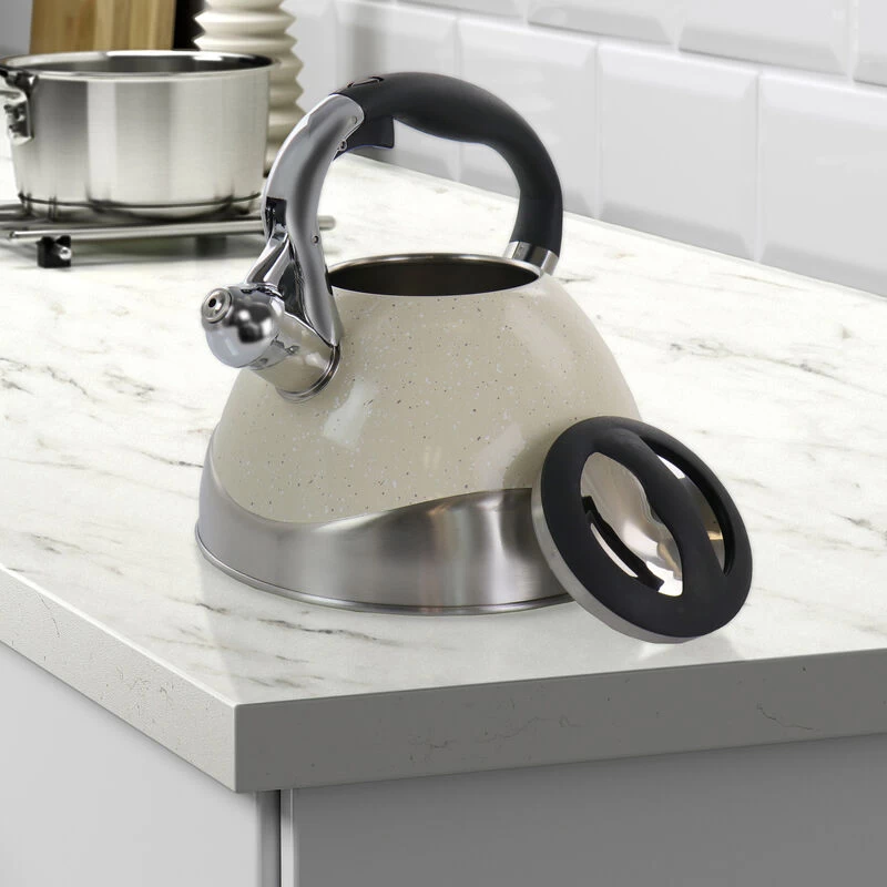 MegaChef 3 Liter Stovetop Whistling Kettle in Light Tan Speckle