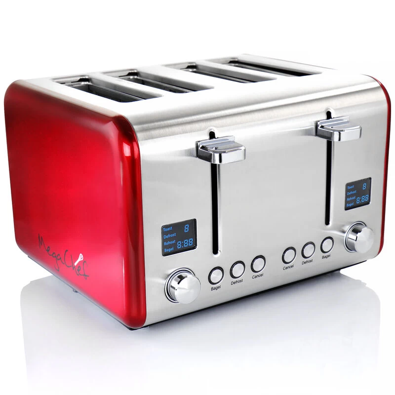 Create a delicious breakfast with the MegaChef 4 Slice Stainless Steel Extra Wide Slot Toaster. Toast, heat and defrost all in one machine with one touch settings. Dual control panels are twice as fast, allowing you to create a breakfast for the entire family in a matter of minutes. 1.5 Inch wide slots are ideal for Waffles, Bagels, English Muffins and Texas Toast, breakfast jut got easier! Features 9 adjustable preset browning settings perfect for all your different breakfast creations. Brushed stainless steel housing is easy to clean and care for and matches every kitchen decor. LED screen shows how much time is left on your selection. Includes convenient slide out crumb tray allowing for quick and easy cleaning. Item Dimensions: 9.00″ x 11.00″ x 6.80″ Item Weight: 4.00lbs