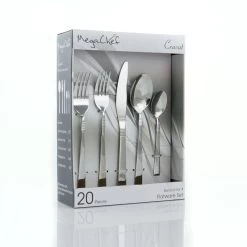 The MegaChef Cravat 20-piece Flatware Set is made of high quality food grade stainless steel, the quality material in high standard resists corrosion and rust, ensures long-lasting use. The Cravat Silverware Set is smoothly finished with no sharp edges, safe and comfortable for both adults and children. Each piece in this Utensil Set is versatile and perfectly weighted and balanced to feel comfortable in your patrons hands. With its proper sizes this set can fit perfectly with your other dinnerware or tableware sets. Item Dimensions: 9.00″ x 7.00″ x 2.00″ Item Weight: 3.00lbs