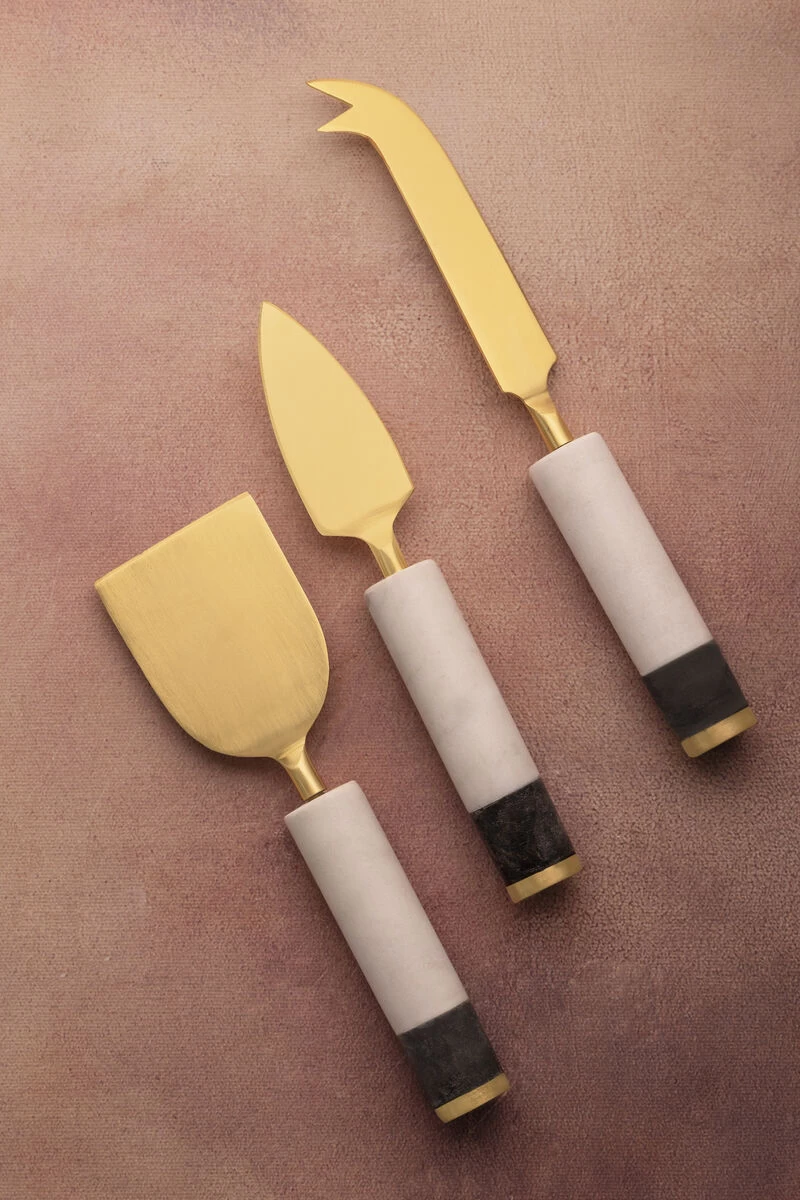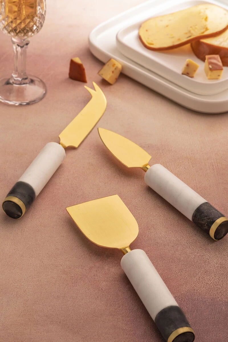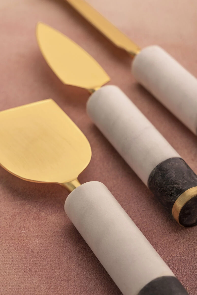 Set of 3 marble cheese knives consisting of 1 hard cheese knife, 1 soft cheese knife and 1 spreader.