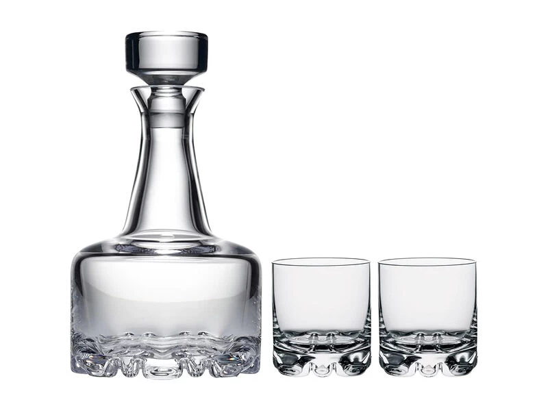 Set includes: 26. 4 oz. Decanter with Stopper and 2 12 oz. Double Old Fashion/OTR Glasses