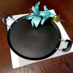 The Zadora Comal Pan is made of solid steel for even heat distribution. The interior features a non stick coating for healthy low-fat cooking, easy food release and clean up. This pan is ideal for cooking/heating up tortillas, toasting spices, roasting veggies, searing meat and much more. It can also be used for serving or as a lid to cover other pots on the stove. Item Dimensions: 16.80″ x 14.80″ x 3.20″ Item Weight: 2.40lbs