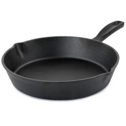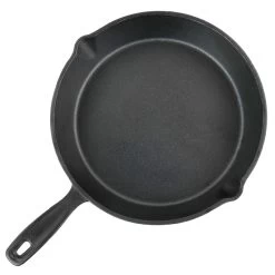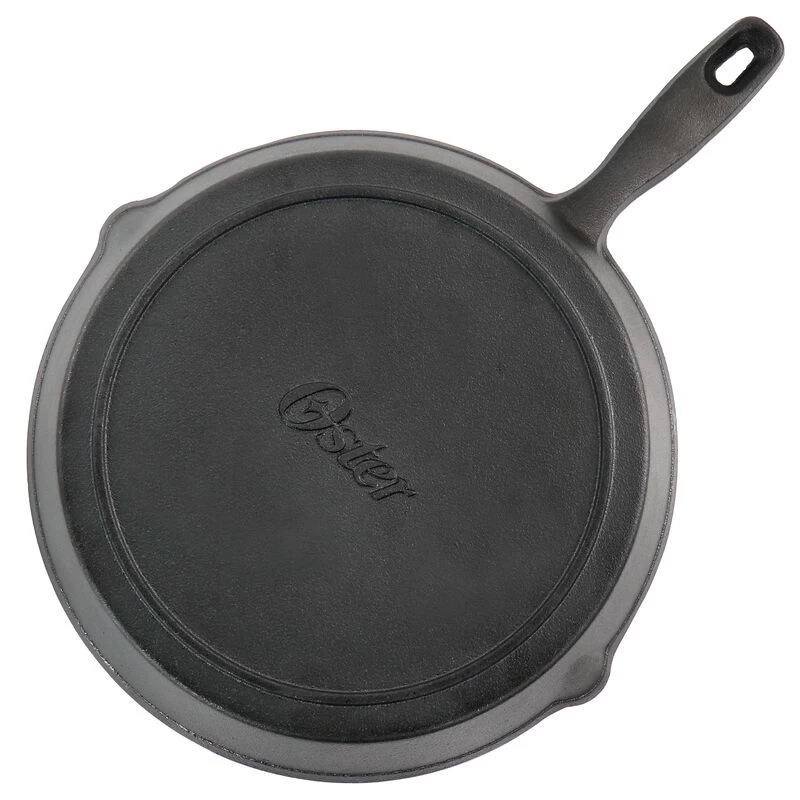 The Oster Castaway 10 Inch Round Cast Iron Frying Pan with Pouring Spouts is a must have addition for any home kitchen cookware setup. This skillet is compatible with most stove tops including induction cook tops and is oven safe. Built-in dual spouts make it perfect for pouring juices and sauces. For proper long lasting care, hand wash only and dry towel dry immediately. This pan’s cast iron body is ideal for searing beef, bbq chicken or roasting lamb. Item Dimensions: 14.50″ x 10.50″ x 2.00″ Item Weight: 4.75lbs