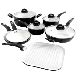 The Herstal 11 Piece Cookware Set provides quality with exceptional style, durability and versatility. The essential pots and pans make a fundamental difference for delicious and nutritious results in the kitchen. Heavy-duty aluminum construction provides fast, even heating and outstanding performance day after day. Item Dimensions: 15.00″ x 9.50″ x 4.25″ Item Weight: 1.45lbs