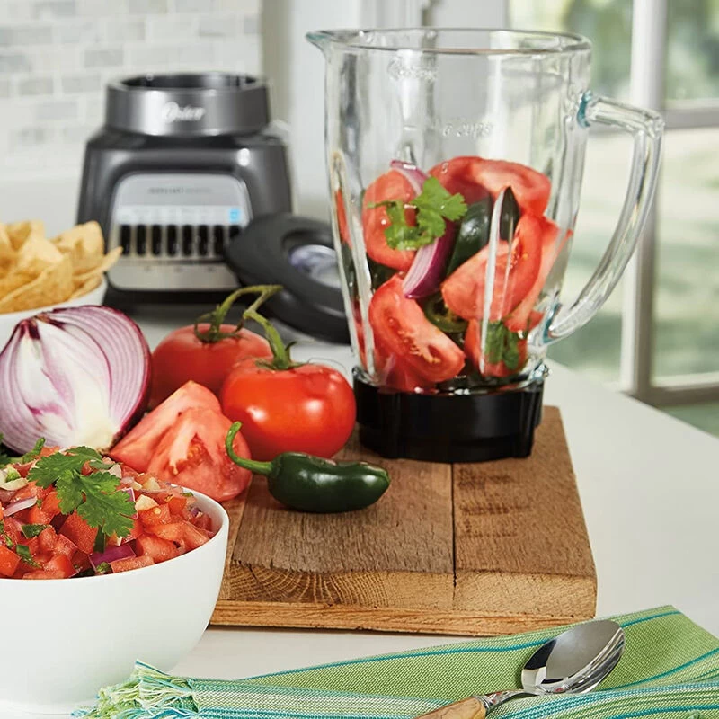 We know you’re busy, and convenience is just as important as power when it comes to your blender. This Oster Master Series Blender provides plenty of power with 800 peak watts; and if you have errands or need to hit the gym, it includes a 24 oz. Blend-N-Go Cup so you can take your favorite smoothie or shake with you. The wide-base design lets food reach the blade with ease, for no jar jam-ups. The extra-large blade assembly tackles all your blending tasks in less time with power and precision. Item Dimensions: 11.20″ x 11.20″ x 13.70″ Item Weight: 5.00lbs