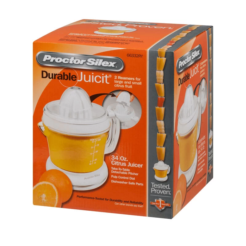Turn fresh produce into a delicious and nutritious beverage. Making fresh, delicious fruit and vegetable juices in your home is simple with a Proctor Silex juicer. Get creative and make nutritious juices to match your dietary needs. Cleaning your juice extractor is simple with the large, easy-to-remove pulp bin. The feed tube on our juicers can handle fruits and vegetables. And the stainless steel cutter/strainer can handle whatever fruit or veggie you want to juice. Item Dimensions: 16.00″ x 8.50″ x 9.50″ Item Weight: 2.75lbs