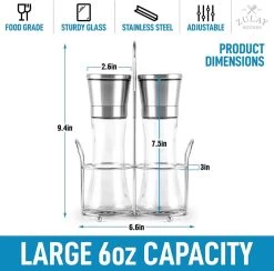Salt & Pepper Grinder Set: Made with thick and durable BPA Free glass bottle with stainless steel cap that is perfect for storing coarse-textured sea salt, Himalayan salt, white peppercorns, and black peppercorns. Each glass mill has a 6oz capacity. Salt and pepper are NOT included.