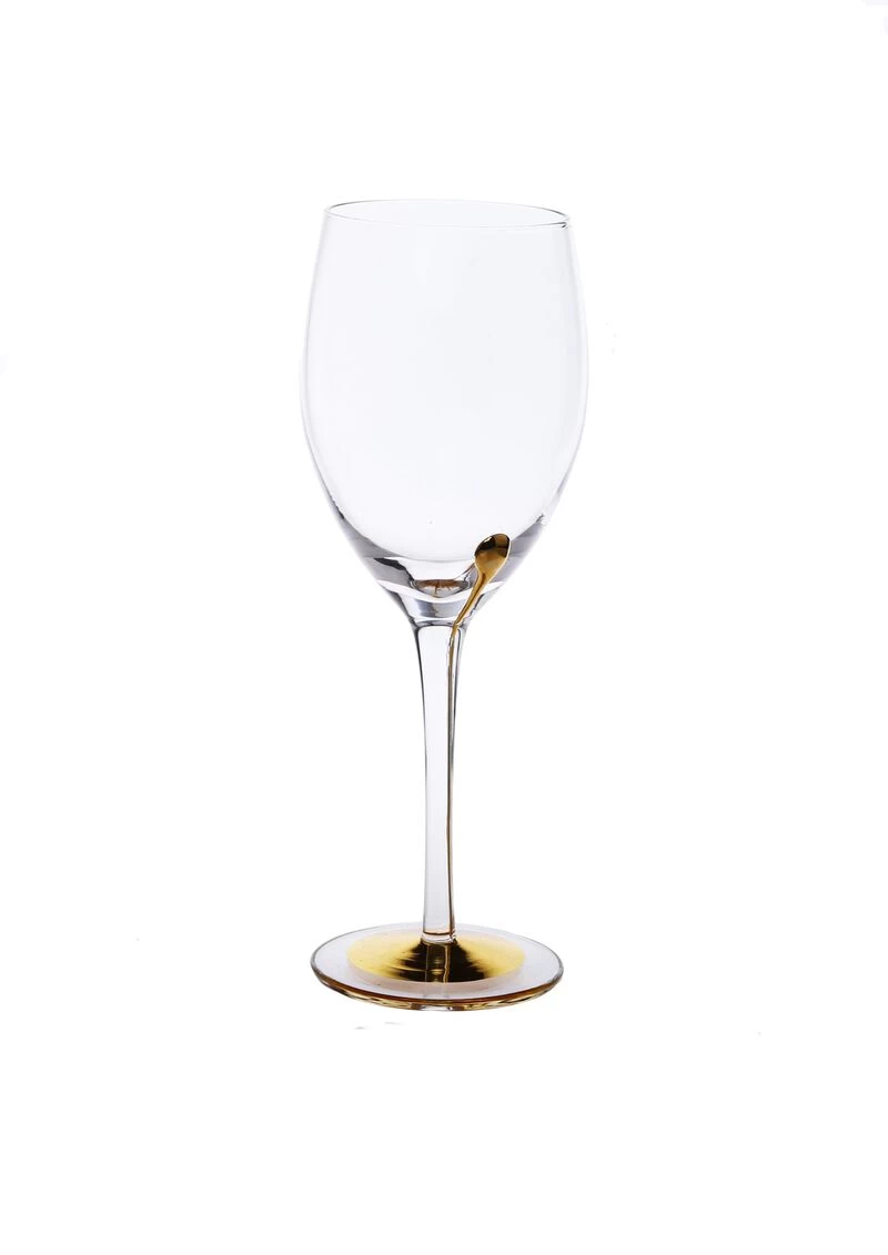 Gilded with a fine gold design as its border and stem, this glassware set is useful for festive occasions and posh events. Its unique evolving cup is appreciated by those with a finer taste for modern sculpts. Accentuate this glass with a wedge of lemon o