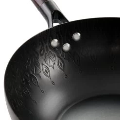 Spice by Tia Mowry 12in Carbon Steel Wok with Wooden Handle in Black