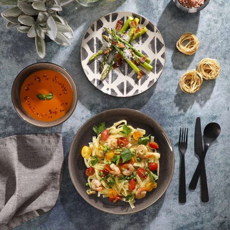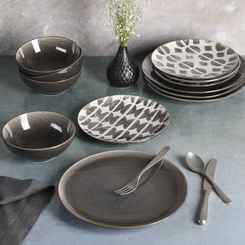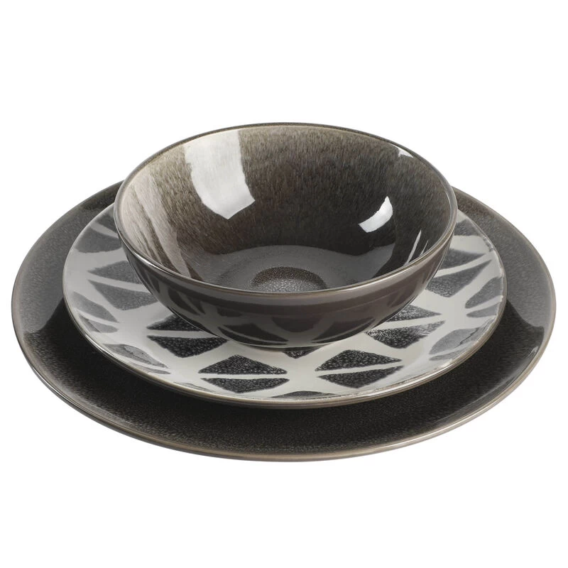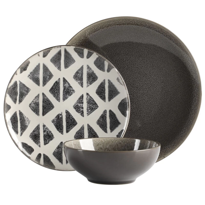Flip your table from bland to bold with the Spice by Tia Mowry Truffle Pepper 12-Piece Dinnerware Set. Crafted from durable stoneware, each dinner plate features a different pattern for a modern mix-and-match look-perfect for layering with the solid-colored bowls and salad plates. With place settings for four, these dishwasher and microwave-safe dishes are the easy choice for elevating your everyday eats. Item Dimensions: 14.20″ x 11.25″ x 9.50″ Item Weight: 19.40lbs