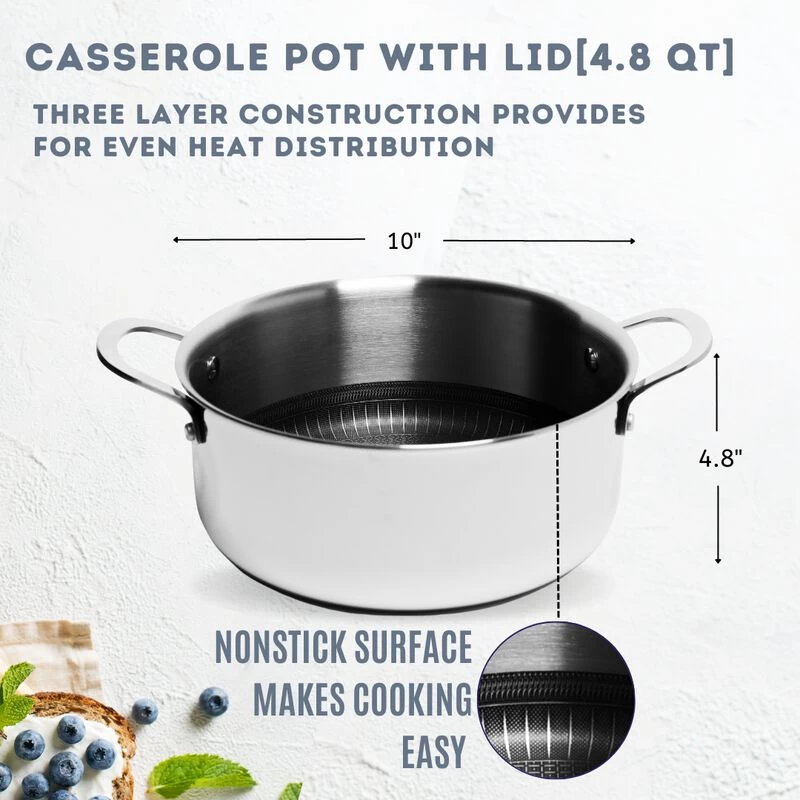 PREMIUM STAINLESS STEEL – Each cookware piece is made out of high-quality stainless steel that is rust resistant and lead free. Therefore, the set is food grade safe and healthy for daily use.