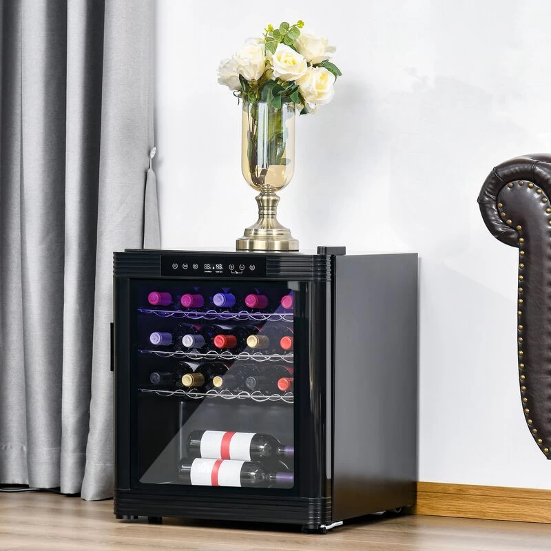 - – HOLDS 18 BOTTLES: This wine fridge has three curved shelves to hold up to 15 standard-sized bottles with a bottom space to hold three extra.
