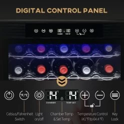 - – EASY TO USE: You can use the touch control LCD screen of this wine cooler to change the temperature inside, switch between Celsius and Fahrenheit, turn the light on and off, and a lock function that provides excellent security.